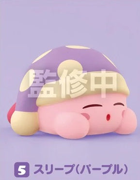 The Kirby character line up: Kirby on Donut, Waddle Dee on Donut, Excited Kirby, Waddle Dee Snoozing, Sleeping Kirby, MIke, and Traffic Cone. This is not a blind purchase item.